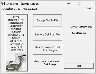 Drive Snapshot creates an exact Disk Image of your system into a file, including the operating system, installed programs, your data and all security attributes - while windows is running and you continue to work. Drive Snapshot it allows you to backup your partition or your hard disk drive and it also can create a disk image of your system. If disaster strikes (a virus, trojan, or hard disk crash), a complete and exact restauration of your system will be possible in only few minutes. The image file can be mounted as a virtual drive, so you can easily restore (or use) single files or directories, using the Windows Explorer, or other program.