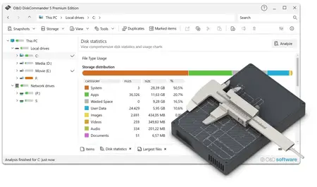 There are collecting passions that are fun. Collecting files that you no longer need will cost you storage space and eventually money - if you need to buy new hard drives. To ensure that finding and cleaning up the storage space wasters does not become a time-consuming torture, we have developed O&O DiskCommander for you.