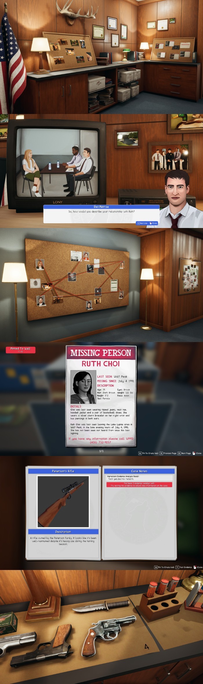 In 1991 Ruth Choi was murdered, it was whittled down to 6 suspects, but the case was never solved. Watch interviews, go through evidence and build your case. A game where you are never told who the killer is, unless you convict them. Use your own deductive skills to find out, who killed Ruth Choi.