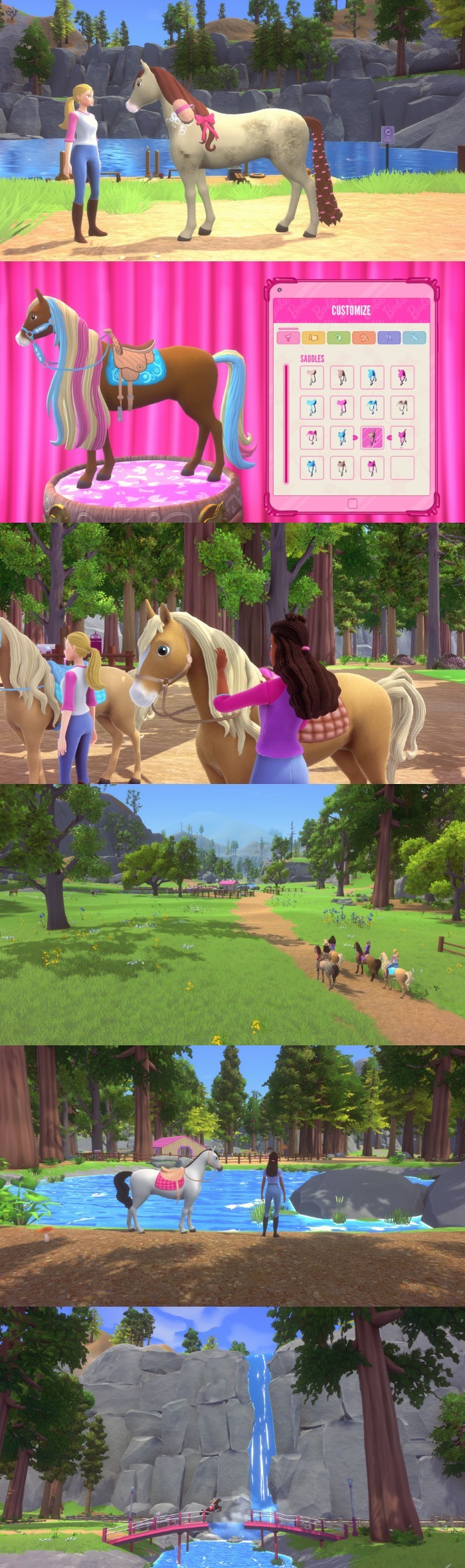 Giddy up! Play as Barbie™ and Barbie in an adventure through Canterbury Trails Park with your horse, Lucky. As a Junior Ranger, you'll discover stunning wildlife and capture amazing photos. Join friends, find collectibles, and add sparkle to Barbie and Lucky's looks.